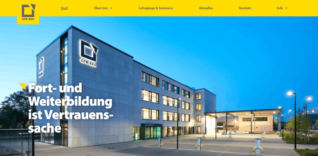 The GFW-BAU website redesign aimed to modernize the digital presence of a well-established training institution in Germany’s construction sector. Our focus was on creating a clear, user-centric interface that effectively communicates complex educational offerings, including modular training programs, qualification requirements, and event registrations.